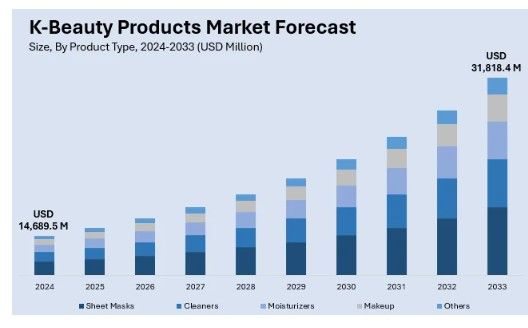 The market for Korean beauty has surged in recent years. In 2024, the global K-beauty market was valued at USD 14–15 billion, with growth projected to continue at high single-digit rates¹.